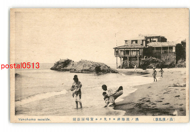 山形 湯の浜風景 湯の浜海岸より見たる宮島屋旅館 *傷み有り