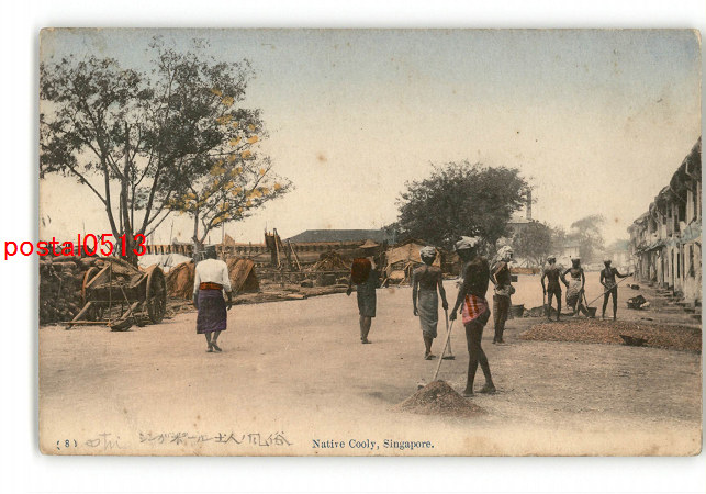 シンガポール 手彩色 現地人の村? *傷み有り