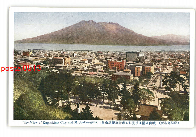 鹿児島 鹿児島名所 城山公園より見たる市街及桜島全景 *傷み有り