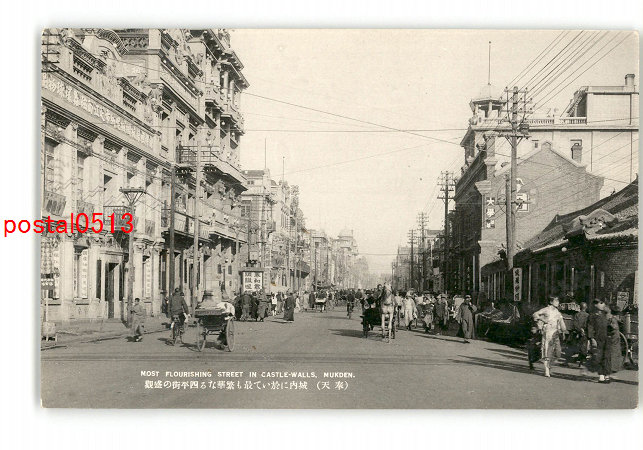 満州 奉天 城内に於いて最も繁華なる四平街の盛観 *傷み有り
