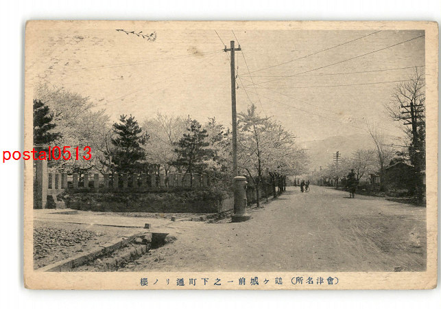 福島 会津名所 鶴ヶ城前一の下町通りの桜 実逓便エンタイア *傷み有り