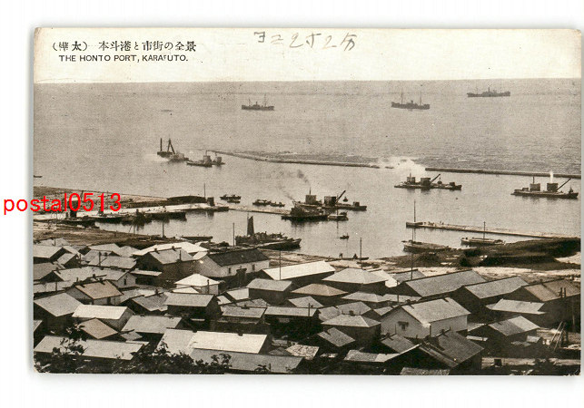 樺太 本斗港と市街の全景 *傷み有り