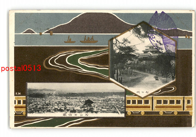 愛媛 松山市街 松山城 電車アート絵葉書 実逓便エンタイア *傷み有り