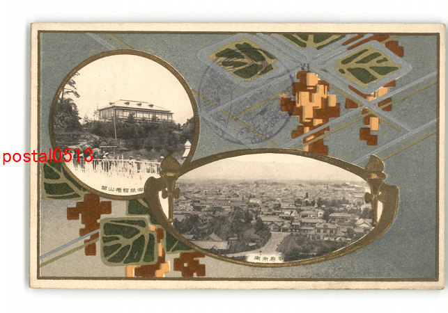 山梨 甲府市街とアート絵葉書 実逓便エンタイア *傷み有り