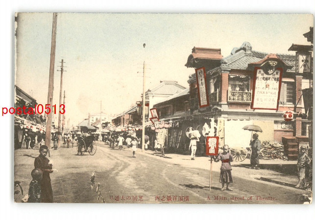 神奈川 手彩色 横浜百景の内 芝居の大通り *傷み有り