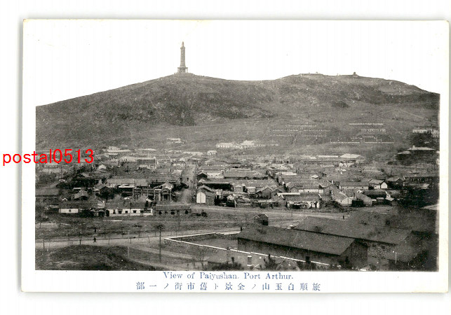 満州 旅順白玉山の全景と旧市街の一部 *傷み有り