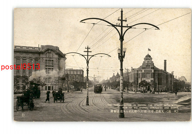 満州 大連 大商店、会社、銀行の櫛比せる大連山縣通 *傷み有り