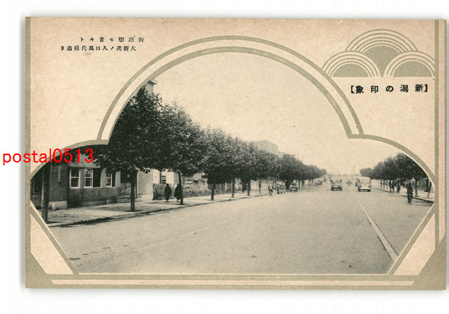 新潟 新潟の印象 街路樹も青々と 大新潟の入口万代橋通り *傷み有り