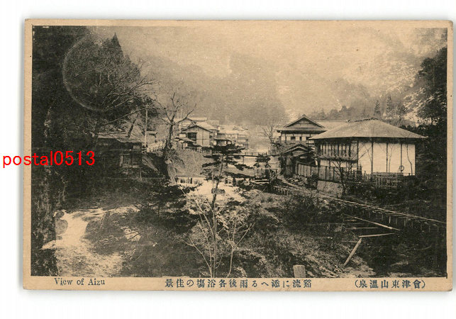 福島 会津東山温泉 谿流に添へる雨後各浴場の佳景 実逓便エンタイア *傷み有り
