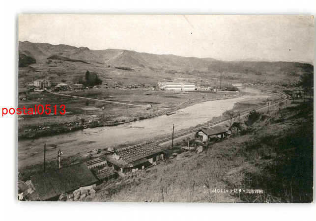 長野 鮎沢付近より見たる川岸村 *傷み有り