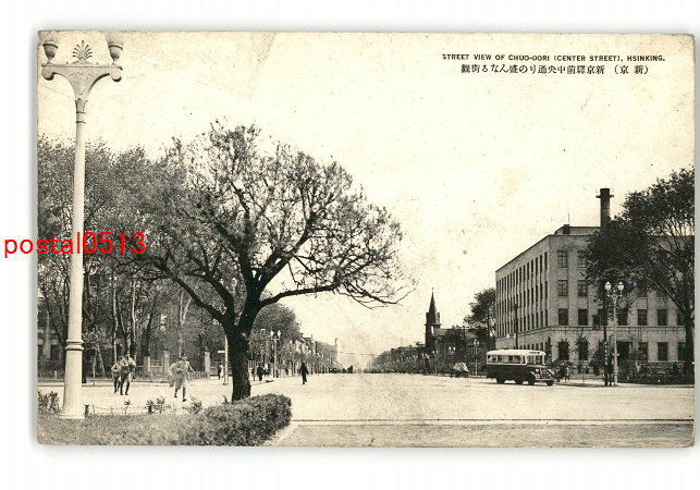 満州 新京 新京駅前中央通りの盛んなる街観 *傷み有り
