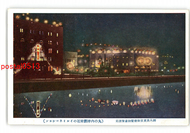 東京 御大典東京御発輦御鹵簿謹写 丸の内帝劇付近のイルミネーション *傷み有り