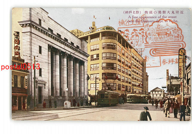 兵庫 神戸名勝 街頭の美観大丸付近 電車 *傷み有り