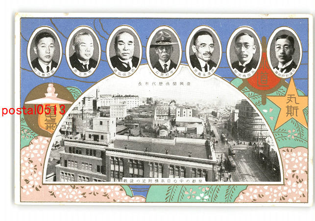 東京 復興関係歴代市長 帝都の中心日本橋付近の盛観 *傷み有り