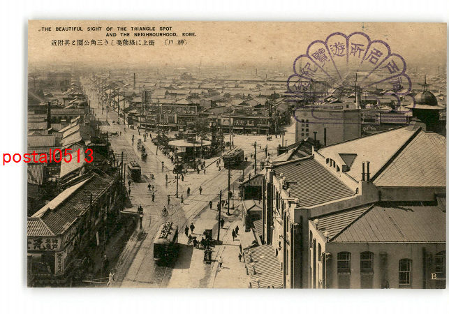 兵庫 神戸 街上に緑蔭美しき三角公園とその付近 電車 *傷み有り