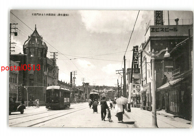 宮城 仙台名勝 街路整然たる多門通り 電車 *傷み有り
