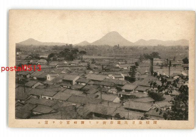 香川 讃岐金刀比羅市街より讃岐富士を望む *傷み有り