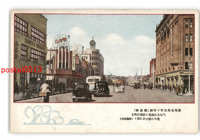 新潟 新潟名所古町十字路 商店街 ■なろか素通り新潟の町を見やれ柳があれ招く 新潟甚句 *傷み有り