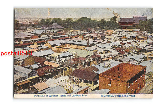 東京 浅草仲見世及観世音 公園の全景 *傷み有り