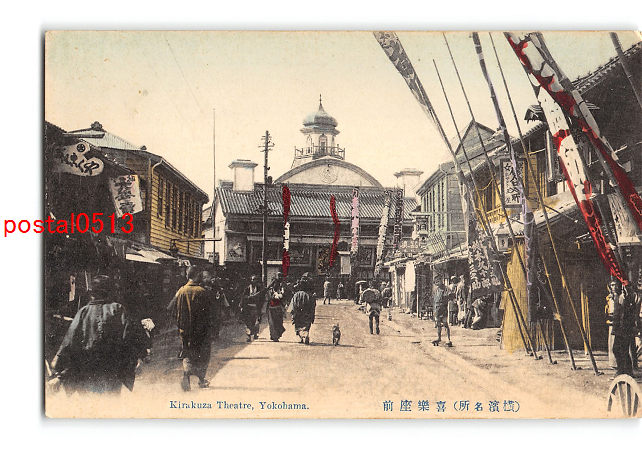 神奈川 手彩色 横浜名所 喜楽座前 *傷み有り