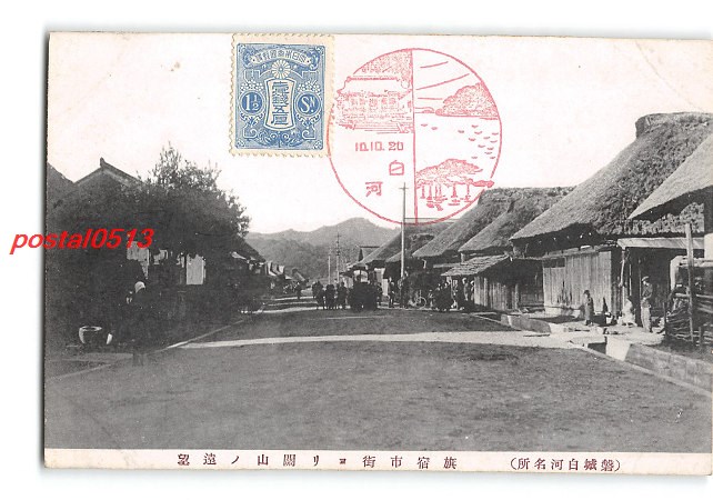 福岡 磐城白河名所 旗宿市街より関山の遠望 *傷み有り