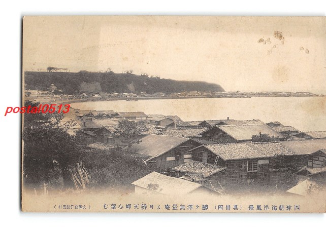 青森 西津軽海岸風景 その34 鰺ヶ沢無量庵より弁天岬を望む *傷み有り