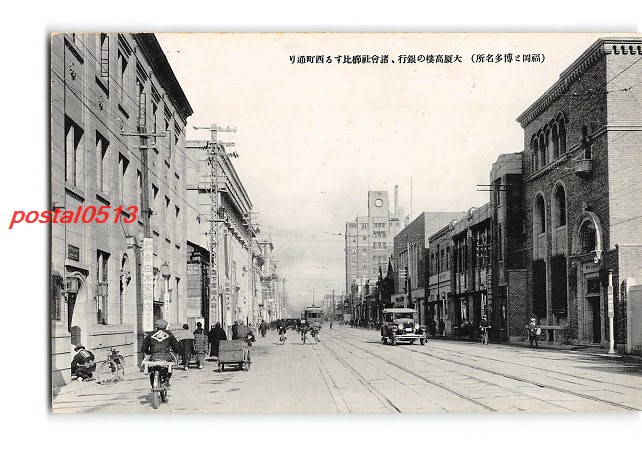 福岡 福岡と博多名所 大厦高楼の銀行 諸会社櫛比する西町通り *傷み有り