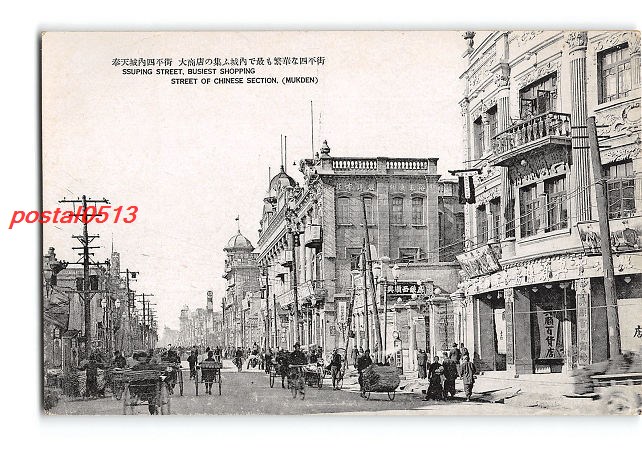 満州 奉天城内四平街 大商店の集ふ城内で最も繁華な四平街 *傷み有り