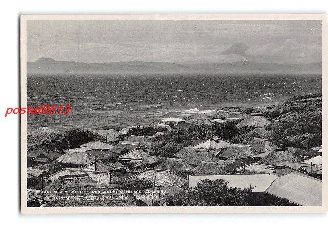 東京 伊豆大島 元村より波頭を越えて霊峰富士の遠望 *傷み有り