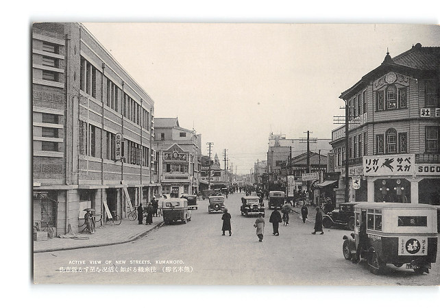 熊本 熊本名勝 往来織るが如く活況を呈する新市街 *傷み有り