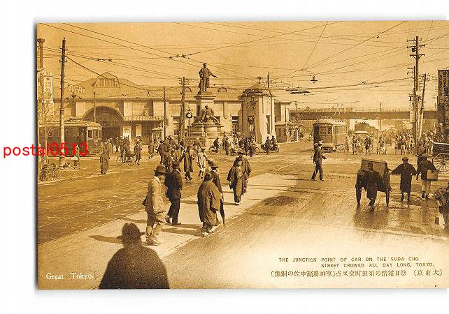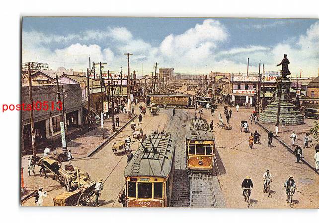 東京 大東京 終日雑踏の須田町交叉点 軍神広瀬中佐の銅像 *傷み有り