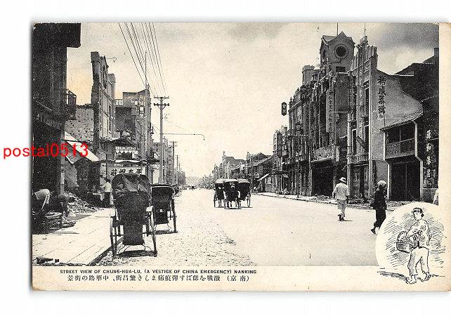 満州 南京 激戦を思ばす弾痕痛ましき繁昌街、中華路の街景 *傷み有り