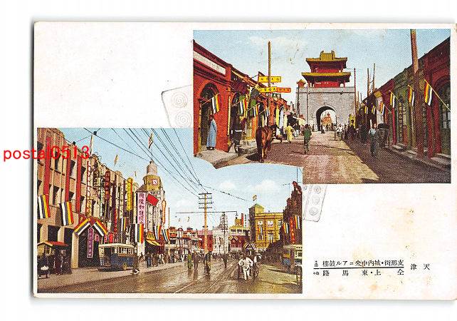 満州 天津 支那街 城内中央にある皷楼 同上 東馬路 *傷み有り