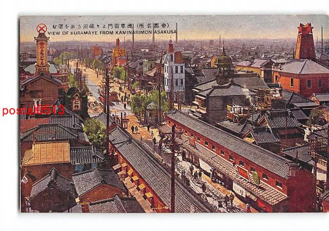 東京 帝都名所 浅草雷門より蔵前方面を望む *傷み有り