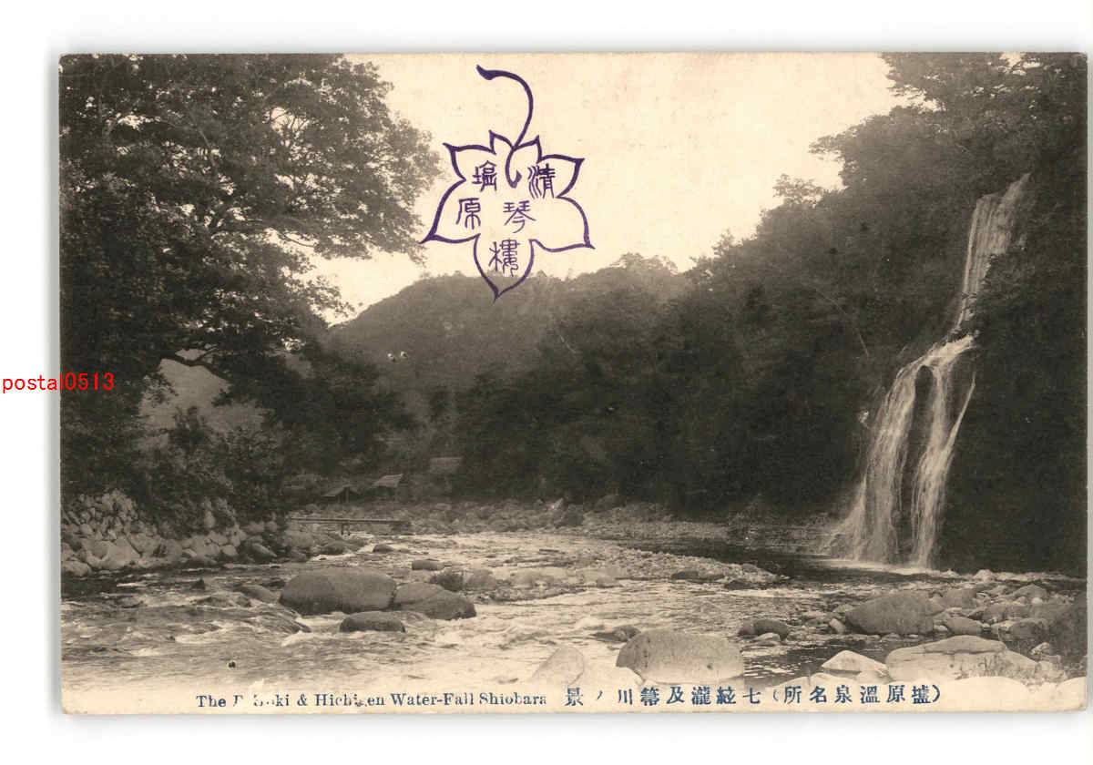 栃木 塩原温泉名所 七絃瀧及箒川の景 *傷み有り