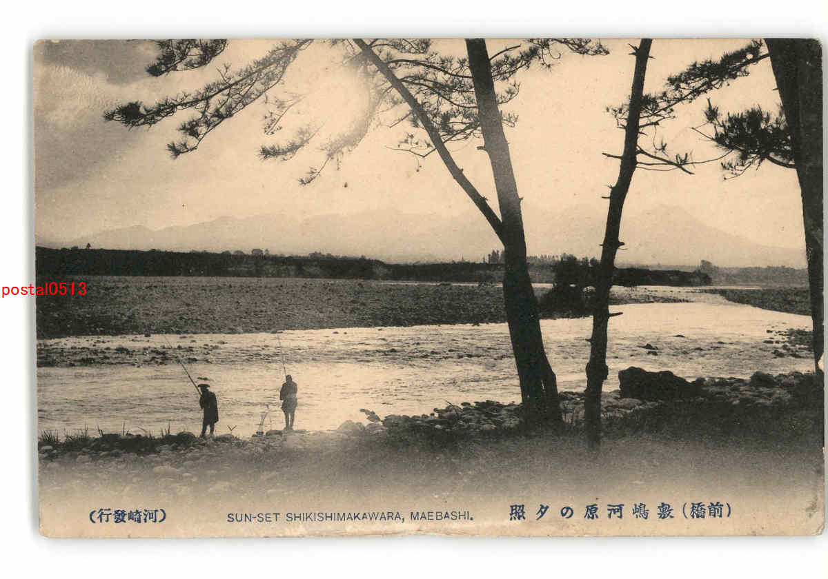 群馬 前橋 敷島河原の夕照 釣り人 *傷み有り