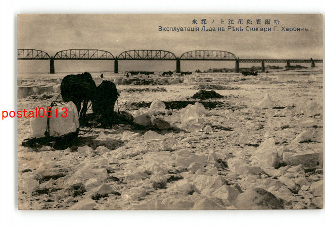 満州 哈爾浜松花江上の採氷 *傷み有り