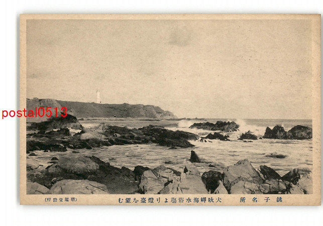 千葉 銚子名所 犬吠岬海水浴場より灯台を望む *傷み有り