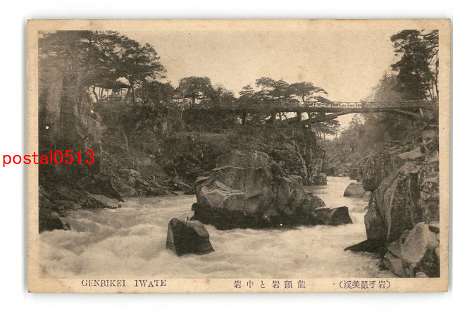 岩手 厳美渓 龍頭岩と中岩 *傷み有り