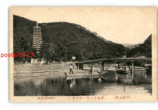 京都 宇治風景 浮島十三宝の塔を望む *傷み有り