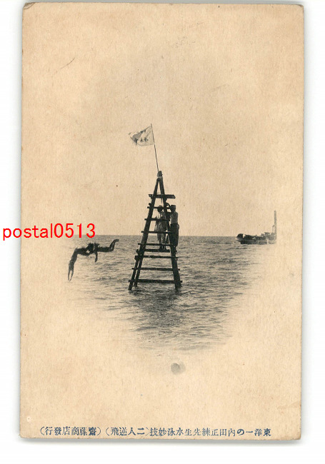 東洋一の内田正練先生水泳妙技 二人逆飛 *傷み有り