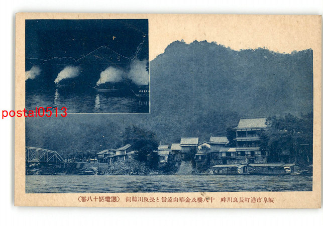 岐阜 岐阜市港町長良川畔 18楼及金華山遠景と長良川鵜飼 *傷み有り