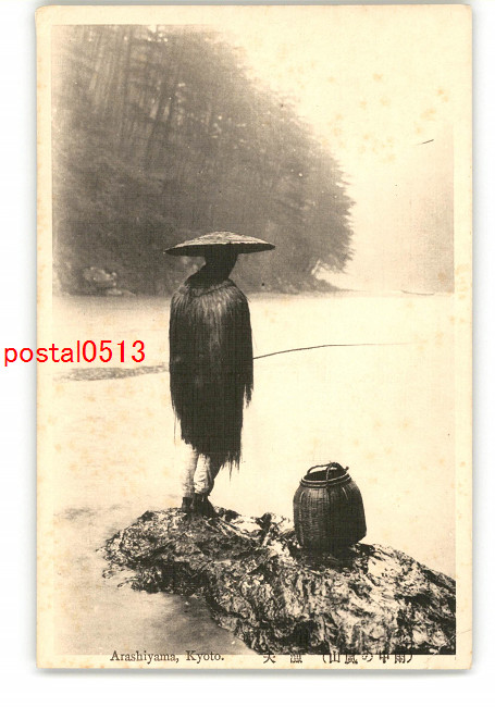 京都 嵐山 雨の中の漁夫 *傷み有り
