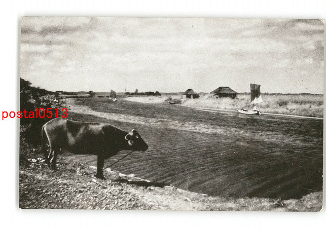 茨城? 初夏の横利根川 牛 *傷み有り