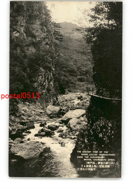 山口 山口県の奇勝 長門峡 断崖絶壁に架る桜橋より千瀑洞口を望む *傷み有り