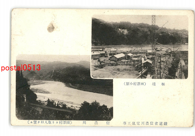 新潟 鉄道省信濃川電気工事 堰堤 田沢村小原 田沢村より取入口を望む *傷み有り