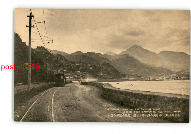 大分 別府名所 海岸美の鎌ヶ崎より遙に鶴見の連峯を望む 電車 *傷み有り