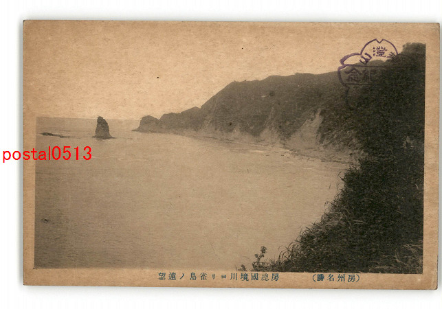 千葉 房州名勝 房総国境川より雀島の遠望 *傷み有り