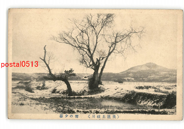 岐阜 美濃土岐川 雪の夕暮 *傷み有り