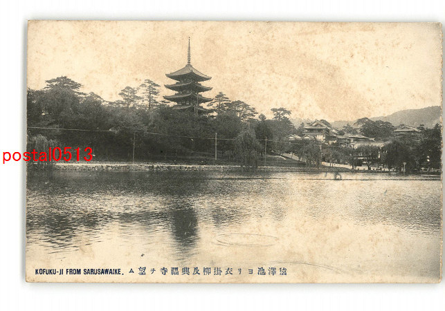 奈良 猿沢池より衣掛柳及興福寺を望む *傷み有り